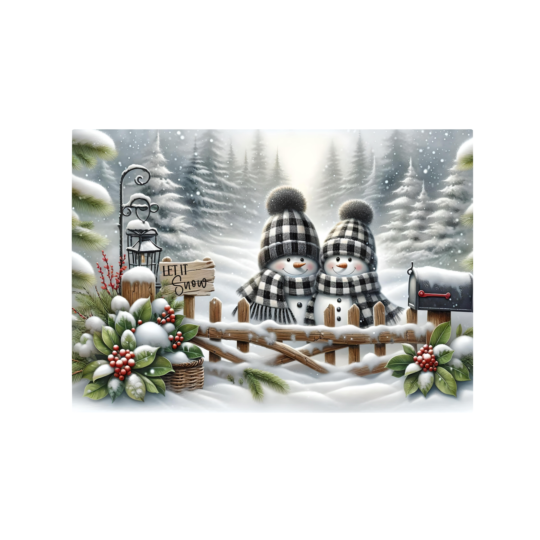 Let It Snow Tempered Glass Cutting Board - Winter Snowmen Design in Two Sizes